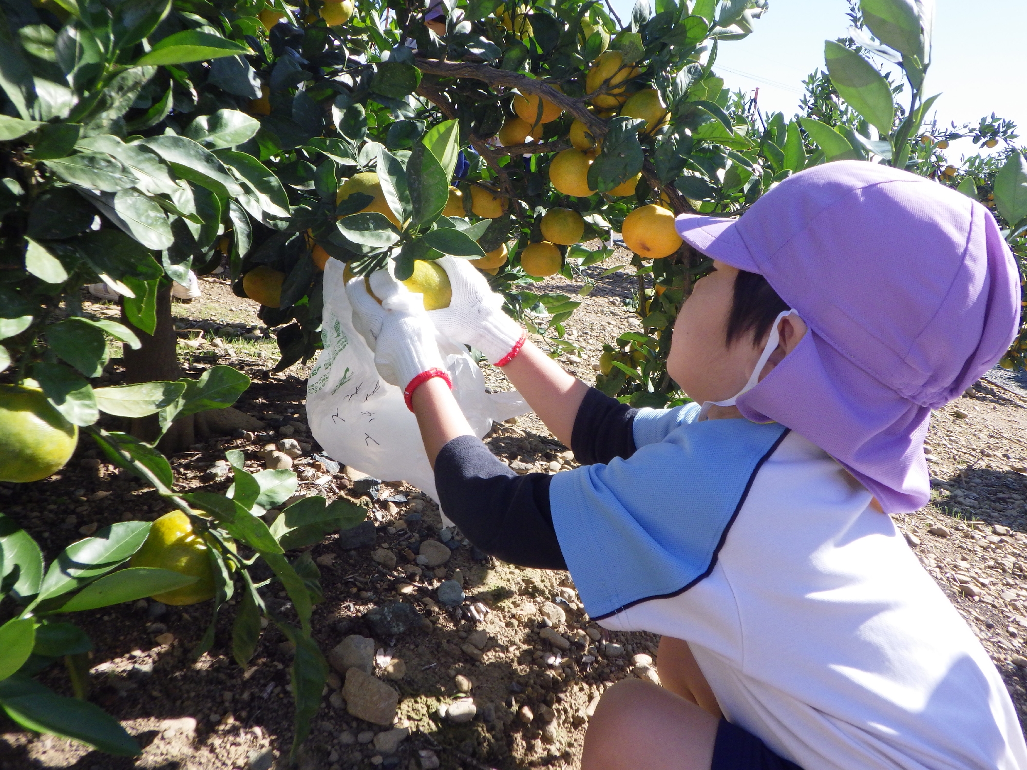 「おいしそうなみかんはどれかな~?」と探しながら収穫をしていました。